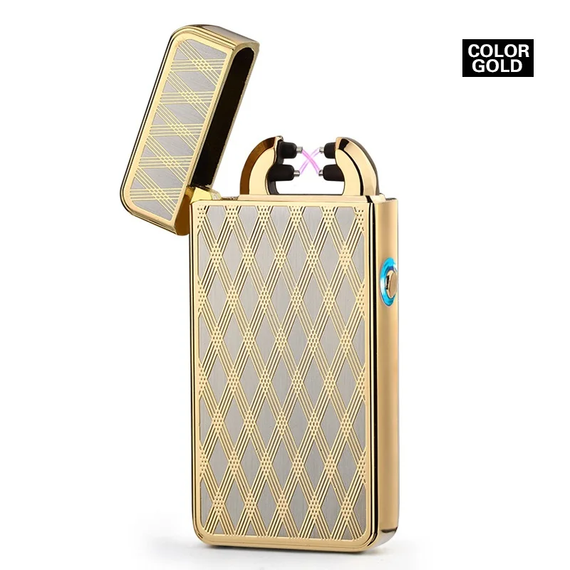 Noble Thin 11mm LED Smoke Cross Double Arc Lighter USB Pulse Cigar Lighters Men Cigarette lighter Case Cigarette Box-2018